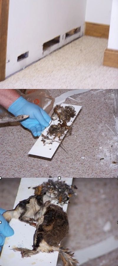 Squirrels squirrels squirrels, this summer home in friendship was having squirrel problems we went down and took the first squirrel out of the washing machine this summer and then proceeded to trap a few more in the home, we did a inspection, located where they were coming in and sealed up the holes. I left traps in the cottage and went back to check in two weeks and found squirrels had got back in I continued to trap catching a total of 14 squirrels, after re-inspecting we found that the squirrels had chewed in five new holes one at each of both the bays in the picture the squirrels removed all of the installation chewed it up and made these nest out of the installation,